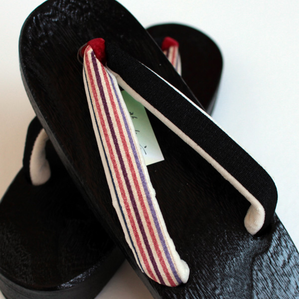 下駄 (黒塗り台 縞の鼻緒) (geta_b6_01)